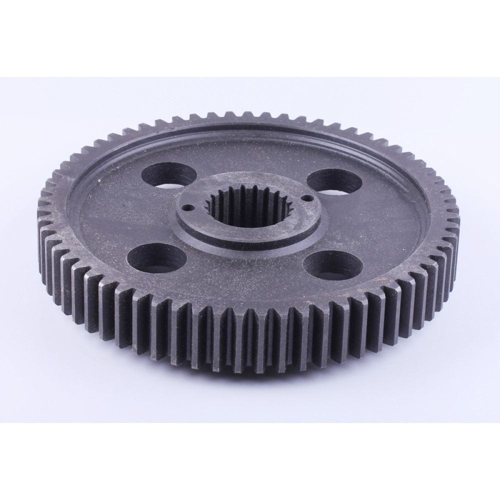 ШЕСТЕРНЯ КПП Z-65 DONGFENG 354/404 (300.39.110-3) — надійна деталь трансмісії, яка використовується у коробці перемикання передач для передачі крутного моменту між елементами механізму та забезпечення стабільної роботи трактора. Шестерня ведена КПП DongFeng 354/404 призначена для тракторів DongFeng 354/404 і має висоту 51 мм, внутрішній діаметр 56.5/51 мм, зовнішній діаметр 265 мм, 65 зубів та 21 шліц, що забезпечує точне зчеплення деталей і ефективну роботу вузла трансмісії. Шестерня КПП Z-65 DongFeng застосовується для ремонту та обслуговування коробки передач, допомагаючи відновити стабільну роботу трактора та продовжити ресурс трансмісії.