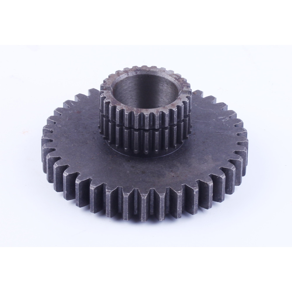 ШЕСТЕРНЯ РОЗДАТКИ ВЕДЕНА Z-28/40 FOTON 244, JINMA 244/264 (FT254.42.104) — надійна та високоякісна запчастина для вашого трактора, яка забезпечує стабільну і точну роботу роздавальної коробки. Внутрішній діаметр шестерні становить 31 мм, зовнішній — 43,15 / 105 мм, загальна висота — 44 мм, а вага — 950 г, що гарантує міцність і довговічність деталі навіть при інтенсивній експлуатації. Ця шестерня використовується як ведена деталь роздаткової коробки, відповідаючи за передачу потужності від приводної шестерні до ведучих коліс трактора.