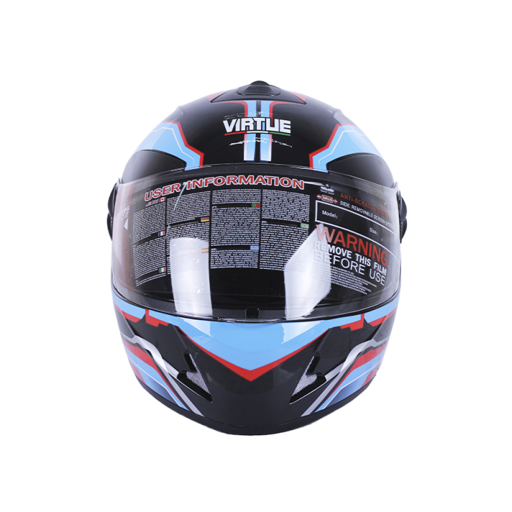 ШОЛОМ MD-800 ЧОРНИЙ ІЗ БЛАКИТНИМ SIZE M - VIRTUE — це сучасний інтегральний мотошолом, створений для забезпечення максимального захисту, комфорту та стильного вигляду під час поїздок на мотоциклі або скутері. Завдяки міцному термопластику високого тиску і щільній підкладці з полістиролу та поролону, шолом надійно захищає голову у будь-яких умовах. Прозорий візор і глянцевий дизайн забезпечують чіткий огляд і стильний вигляд, а мікрометрична пряжка гарантує зручну та надійну фіксацію. Ідеальний вибір для тих, хто шукає легкий, безпечний та універсальний мотошолом VIRTUE.