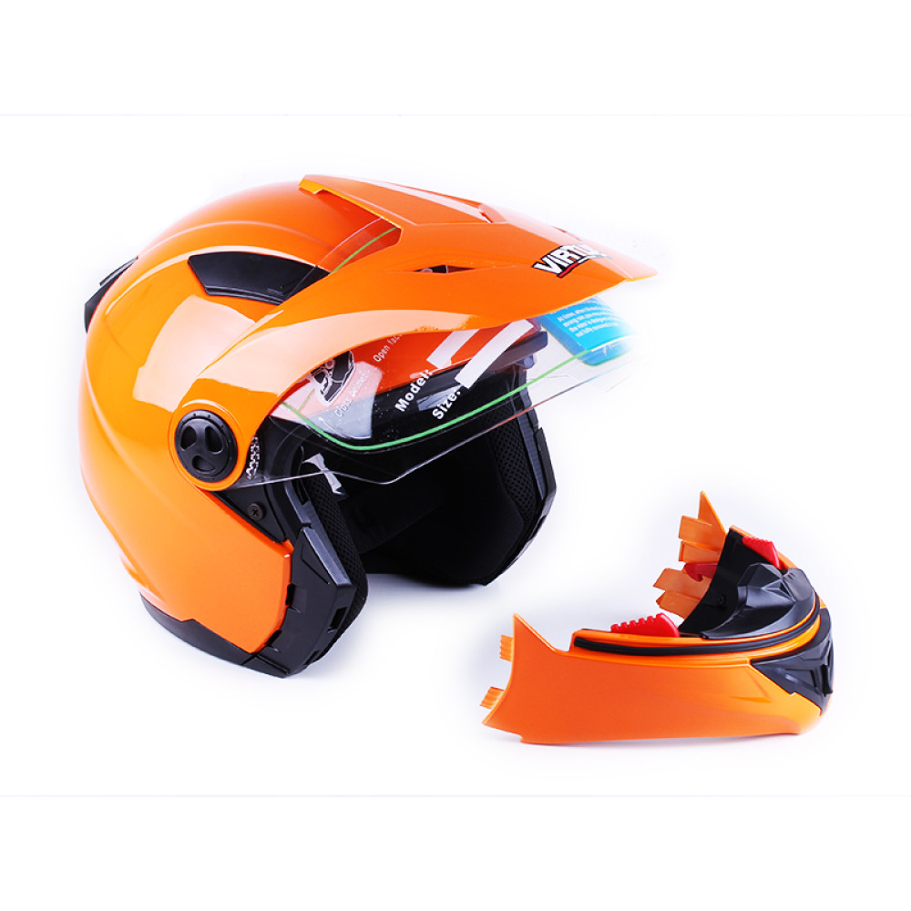 ШОЛОМ MD-900 ПОМАРАНЧЕВИЙ (ТРАНСФОРМЕР) SIZE M - VIRTUE створений для райдерів, які цінують комфорт, безпеку та сучасний стиль. Завдяки знімному підборіддю, вбудованим окулярам та ударостійкому корпусу з термопластика високого тиску, цей закритий мотошолом-трансформер VIRTUE ідеально підходить для міських поїздок, туризму на мотоциклі, скутері або квадроциклі. Всесезонна конструкція та легка вага (995 г) забезпечують комфорт та безпеку в будь-яку пору року, а яскравий помаранчевий колір додає стилю та підвищує помітність на дорозі.