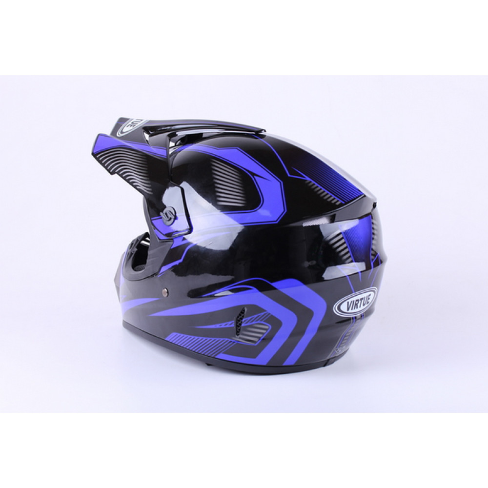 ШОЛОМ MD-905 СИНІЙ SIZE L - VIRTUE — ідеальний вибір для мотоциклістів, які цінують безпеку, комфорт та стильний дизайн під час поїздок на мотоциклі, скутері або квадроциклі. Цей кросовий мотошолом забезпечує надійний захист завдяки міцному термопластику високого тиску та щільній підкладці з полістиролу та поролону, а мікрометрична пряжка гарантує зручне та швидке фіксування шолома. Глянцевий корпус та стильне синьо-чорне забарвлення роблять його привабливим аксесуаром для будь-якого райдера.