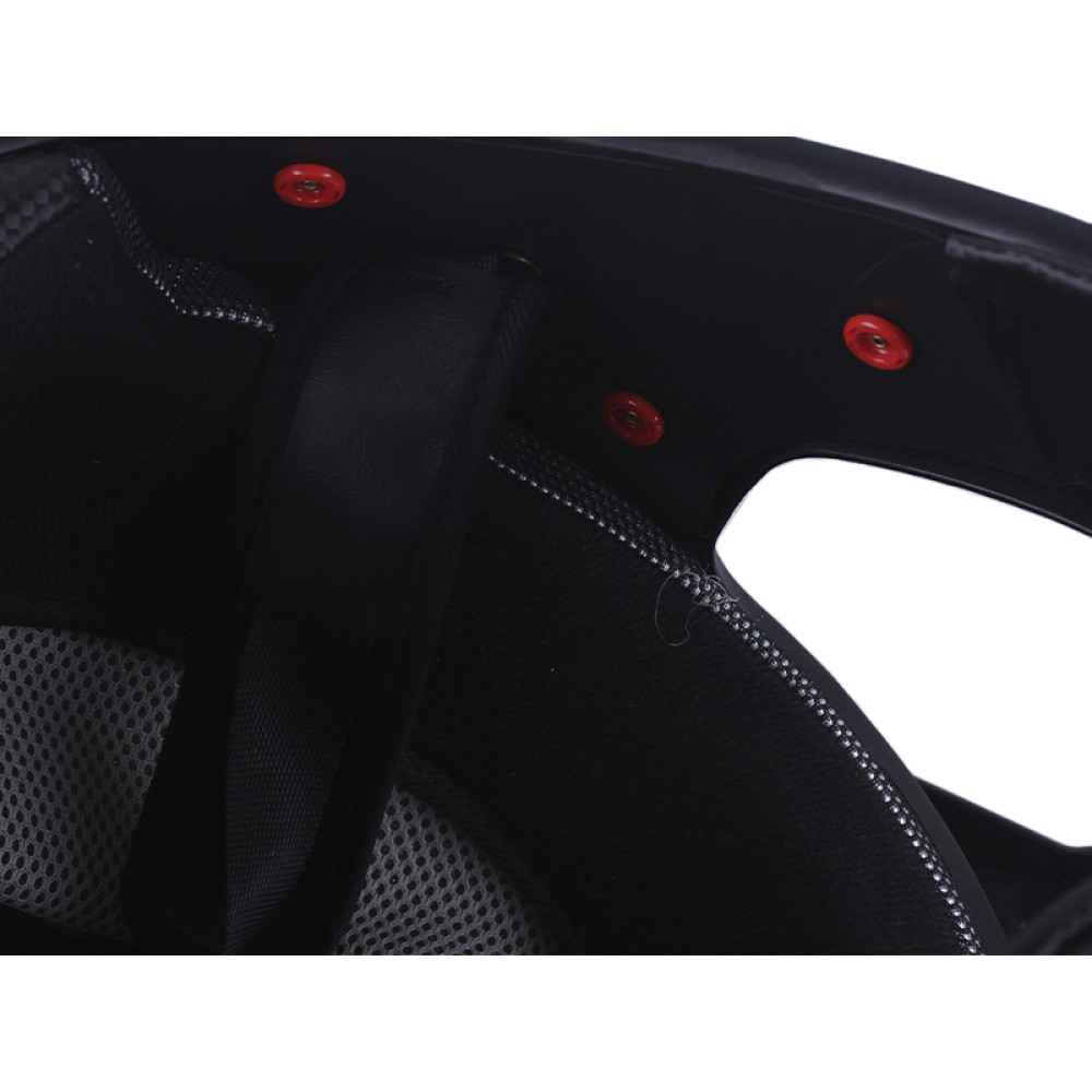- Надійна фіксація та простота використання — мікрометрична пряжка (тріскачка) забезпечує швидке та безпечне застібання шолома під час динамічних заїздів і мотопрогулянок.