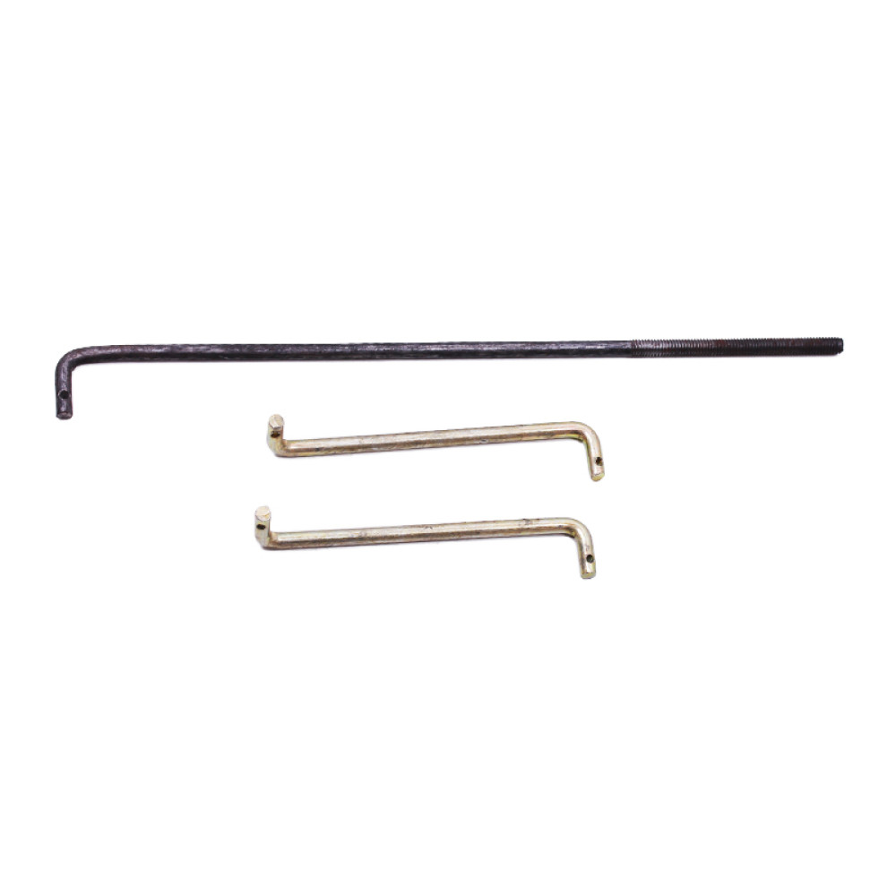 Тяги керування комплект (8шт.) - КПП/6 Довжина тяг регулювання газу та підніжки 2шт. (мм) - 1900, Ø3.6 Довжина тяг розблокування коліс, довгих 2шт. (мм) – 1200; Ø5,15; М6 Довжина тяг розблокування коліс, коротких 2шт. (мм) – 100; Ø5,15 Довжина тяги зчеплення 1шт. (мм) – 980; Ø7; М8 Довжина тяги гальма стоянки 1шт. (мм) – 250; Ø5,15; М6 Вага комплекту (гр.) – 1100