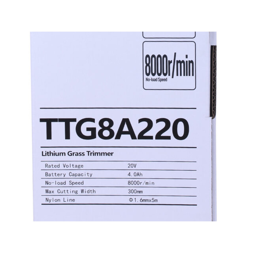 -Категорія запчастиниТример акумуляторний, -КолірСріблястий: Сріблястий з чорним, -Тип акумулятораЛітієвий, -Ємність акумулятора, А*год4, -Напруга акумулятора, В20, -Обороти двигуна, об/хв8000, -Ширина обробки, мм300, -Діаметр волосіні, мм1,6, -Довжина лески м5, -Вага нетто/брутто, кг3.5/4, -ВиробникTTG, -Країна-виробник Китай, Гарантія місяців. Обмін/повернення товару протягом 14 днів,
