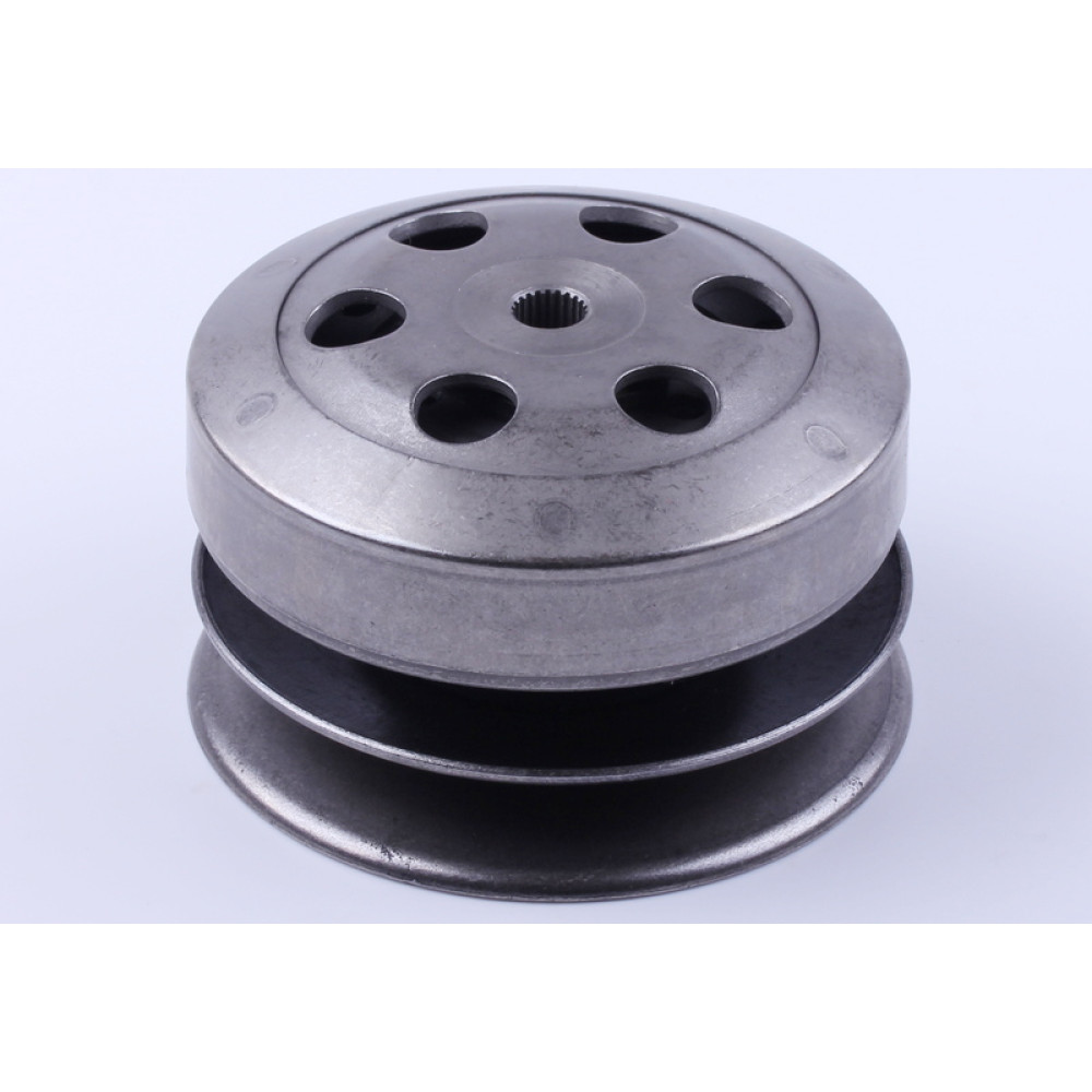 Варіатор задній у зборі (зчеплення) - 50CC4T Діаметр дзвона (мм) - 115 Висота загальна (мм) - 73 Діаметр шліцевий (мм) - 10,5 Кількість шліців (мм) - 22 Вага (гр.) - 1940