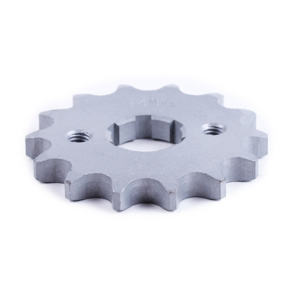 Зірка передня 14Т CB-125/150 Діаметр загальний (мм) - 61 Діаметр посадковий внутрішній (мм) - 17/20 Ширина (мм) - 7 Міжболтова відстань кріплення (мм) - 34 Вага (гр.) - 100